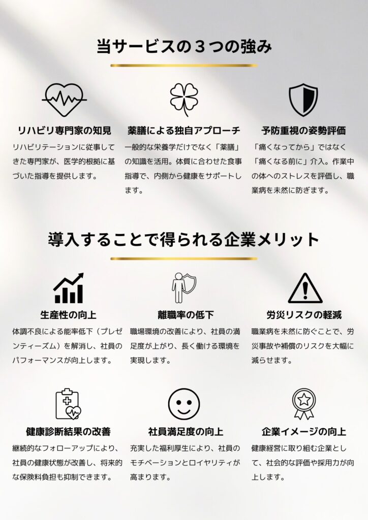 より良い人材が、定年退職まで健康で元気に過ごしていただくために身体に焦点を当てた福利厚生は非常に重要と言えます。